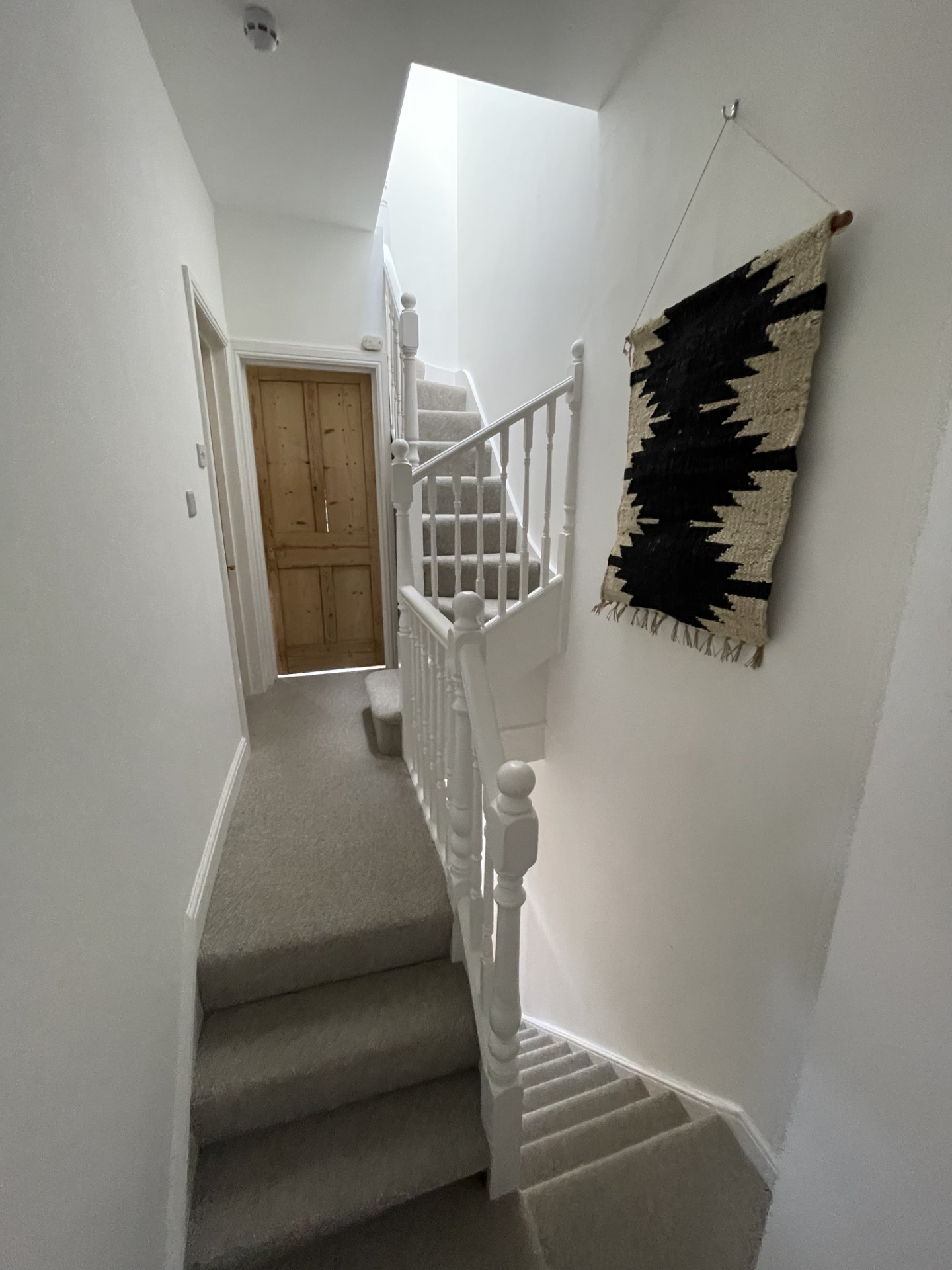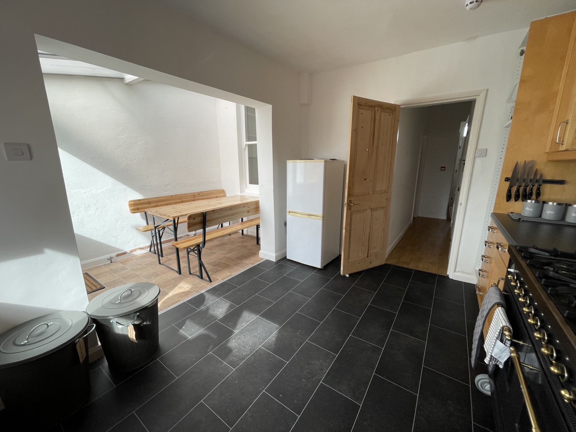 On the ground floor, the kitchen with a dining area and access to the back yard. A living space at the front of the property and there is also one bedroom on the ground floor
